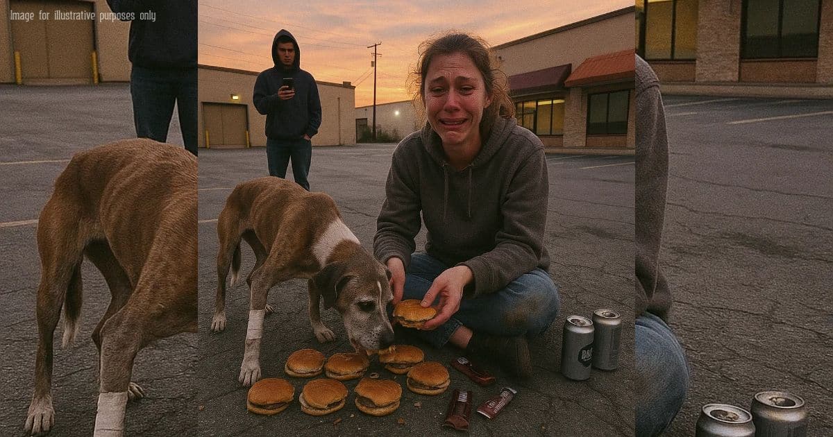 It was just a woman, a dog, and a burger, in a parking lot that had seen too much and would see too much again.