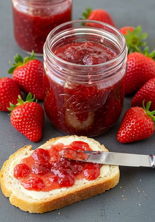 Once your strawberry jam is done, transfer it into jars and make sure your jars are also hot. Put boiling water into the jars and let them sit for a good ten minutes before you pour the jam in. Once done, you are going to place them into the fridge until cold and sticky, and you can use them in whatever you want.