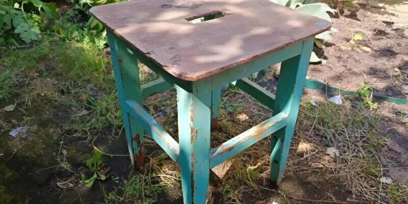 At the dump, I noticed this old stool that someone had tossed away without a second thought 😲 Despite its awful appearance and cracks, the structure was surprisingly solid, so I decided to take it home 😅 I spent the entire day crafting a new seat from wooden planks 😯 After stripping off the old paint and giving it a fresh new color 😲
