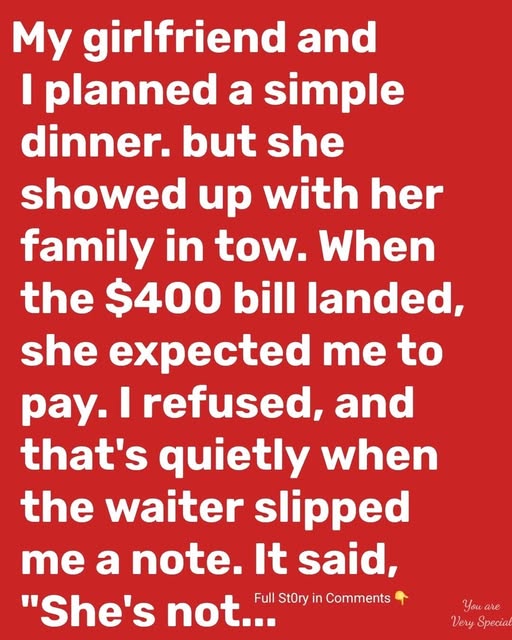 I genuinely believed the evening would be uncomplicated. The kind of night people talk about later with a smile—nothing extravagant, nothing dramatic. Just two people enjoying each other’s company. My girlfriend and I had discussed it casually all week. Dinner after work, a cozy restaurant, maybe candles on the table, maybe one dessert we’d split because neither of us could ever finish a whole one alone. It wasn’t meant to be a statement or a milestone. It was simply meant to be time together.