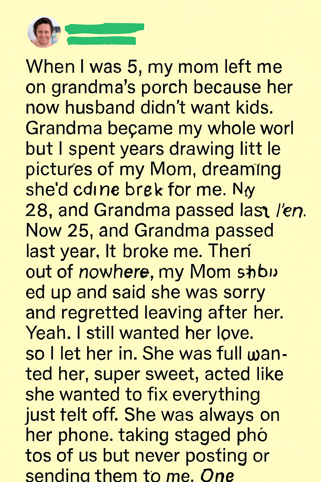 Her mother stood on Grandma Rose’s porch, her hands trembling as she zipped up Alexa’s little pink coat. “You’ll be safe here, baby,” she whispered, avoiding her daughter’s eyes.